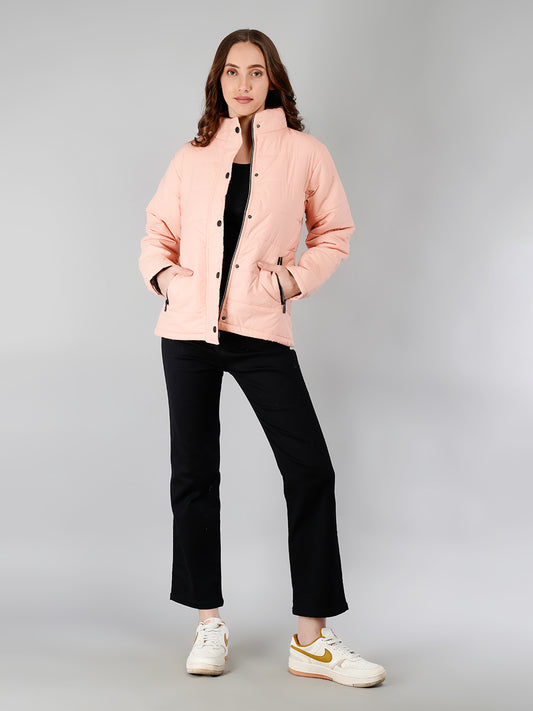 Women Bomber Jacket Snapbutton: Peach