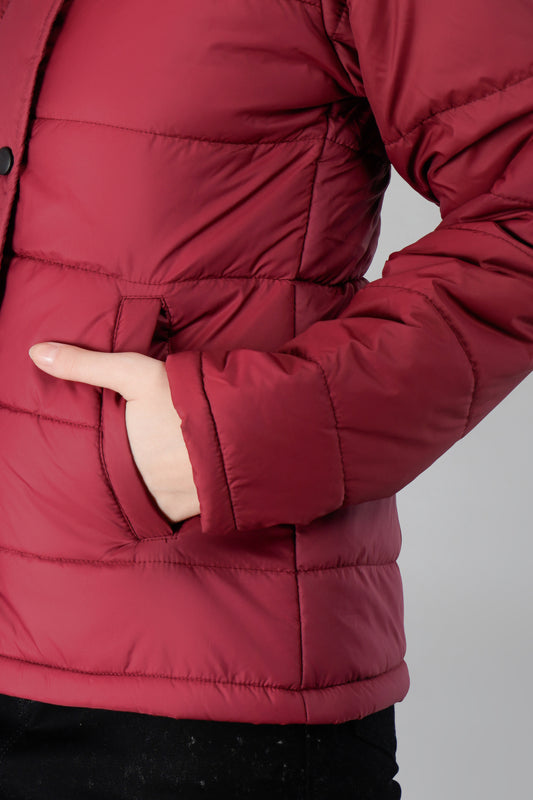 Women Bomber Jacket Snapbutton : Burgundy