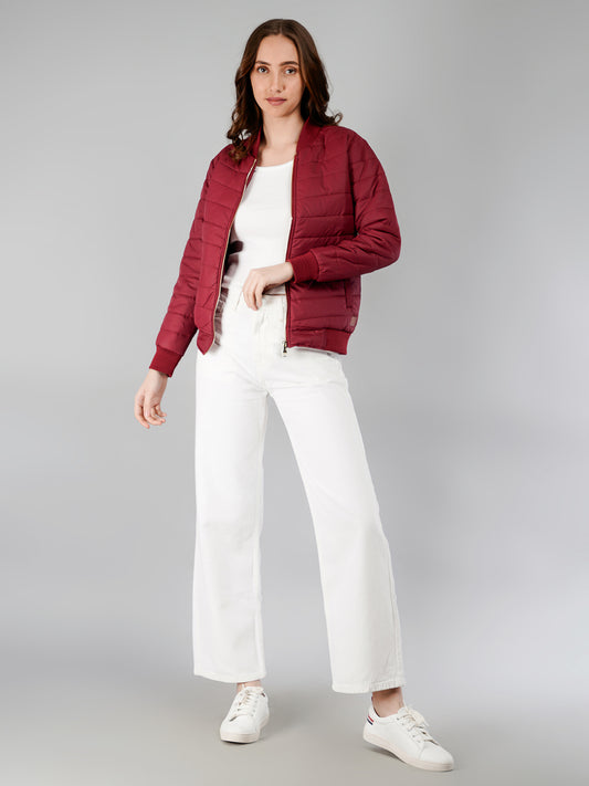 Women Bomber Jacket : Burgundy (with branding)