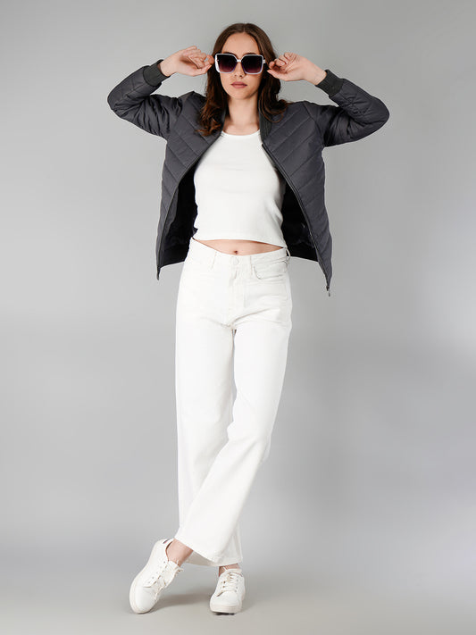 Women Bomber Jacket : Grey