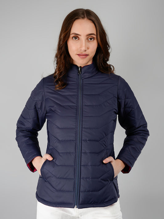 Women Puffer Jacket Reversible - Navy / Fuchsia