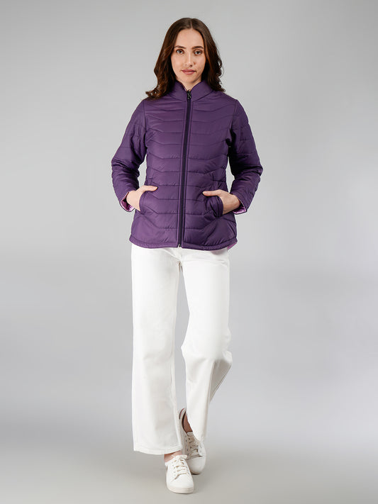 Women Puffer Jacket Reversible - Purple / Mouve