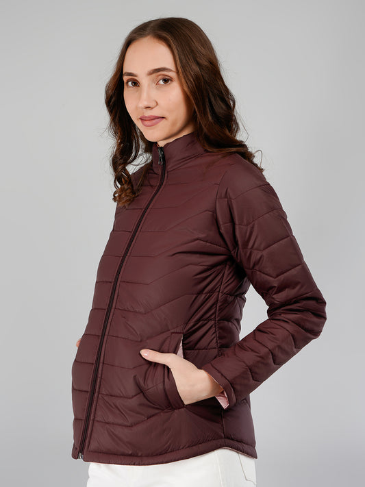 Women Puffer Jacket Reversible - Brown/Peach